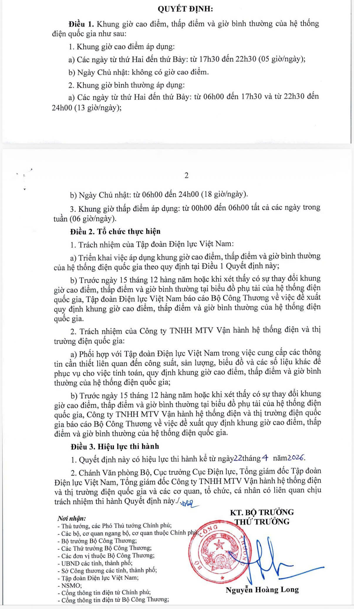 Bộ Công Thương vừa ban hành Quyết định số 963/QĐ-BCT về khung giờ cao điểm, thấp điểm và giờ bình thường của hệ thống điện quốc gia. Quyết định có hiệu lực từ ngày 22/4/2026 và quy định cụ thể thời gian áp dụng theo từng ngày trong tuần.