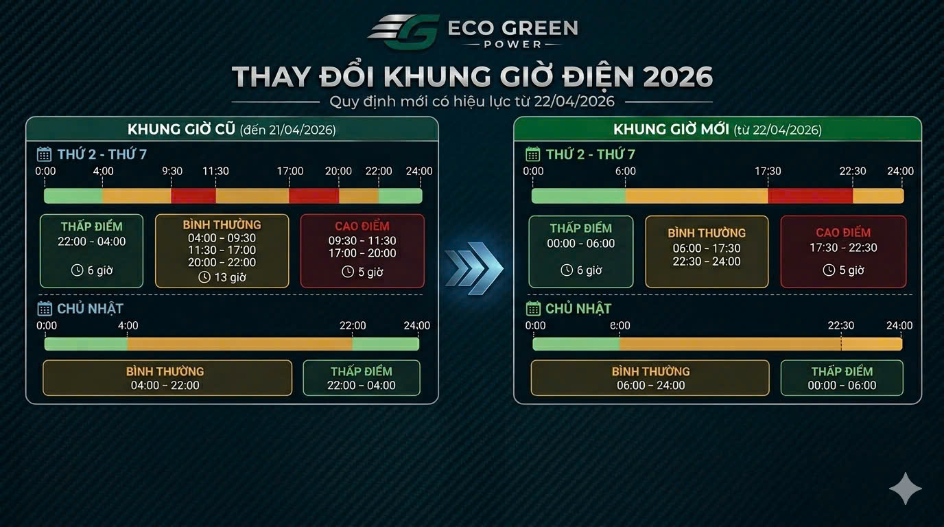 Khung giờ thấp điểm được quy định từ 0h đến 6h sáng cho tất cả các ngày trong tuần, với tổng thời gian 6 giờ/ngày.